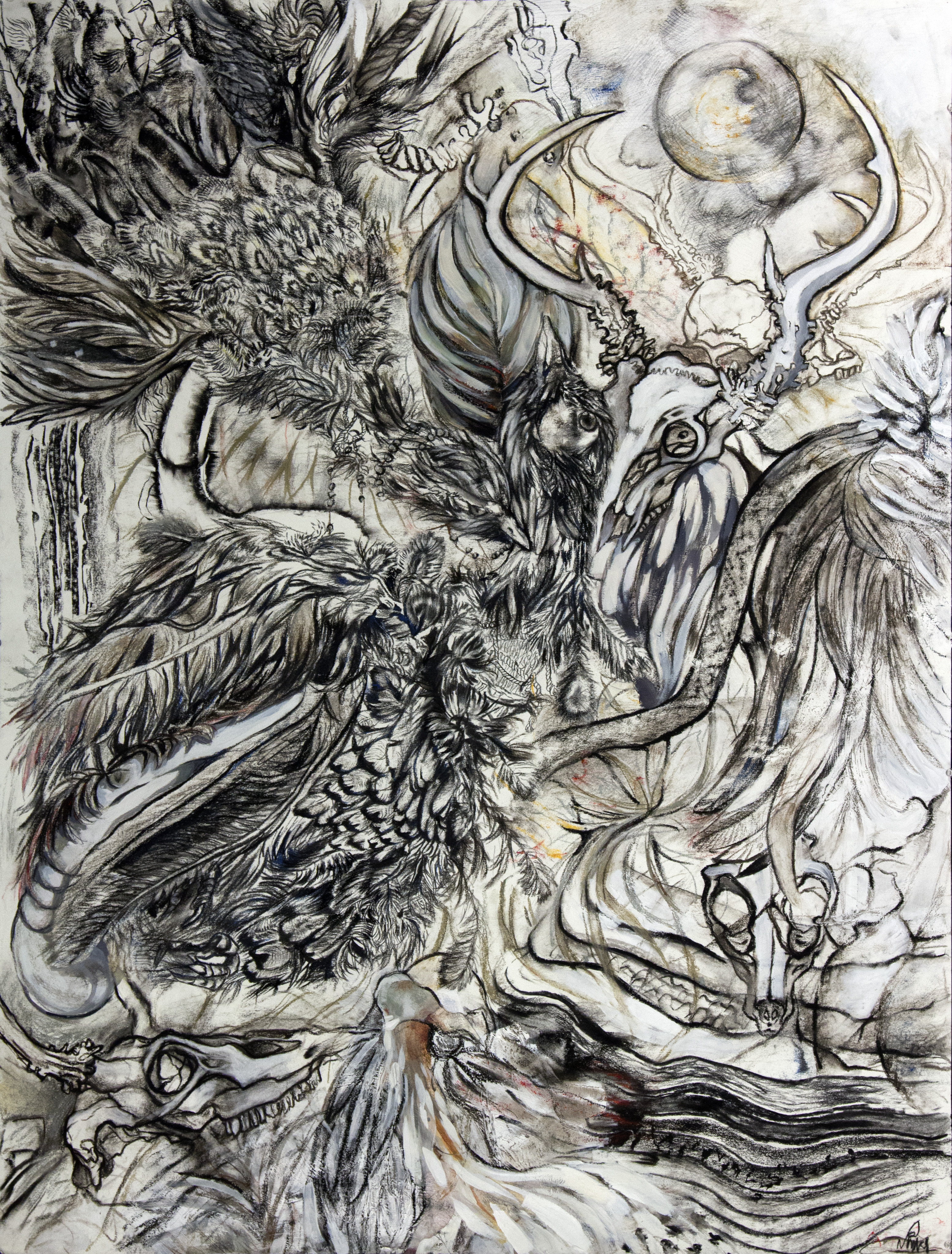 MIAO Keyan, Convolution, 2018-2020, Charcoal and mixed media on paper, 48 x 67”