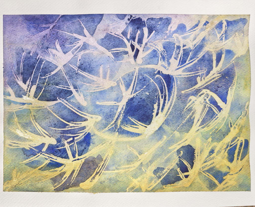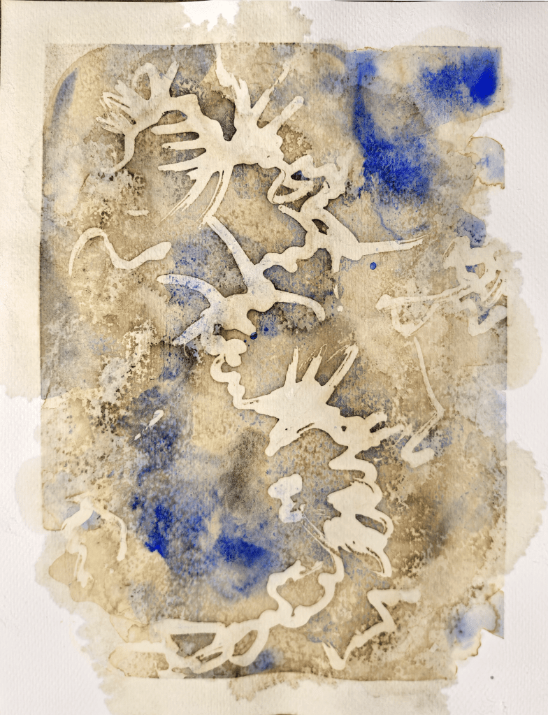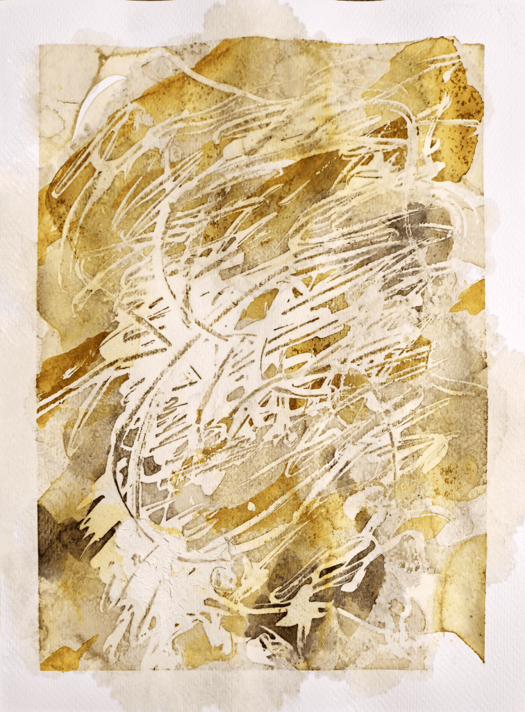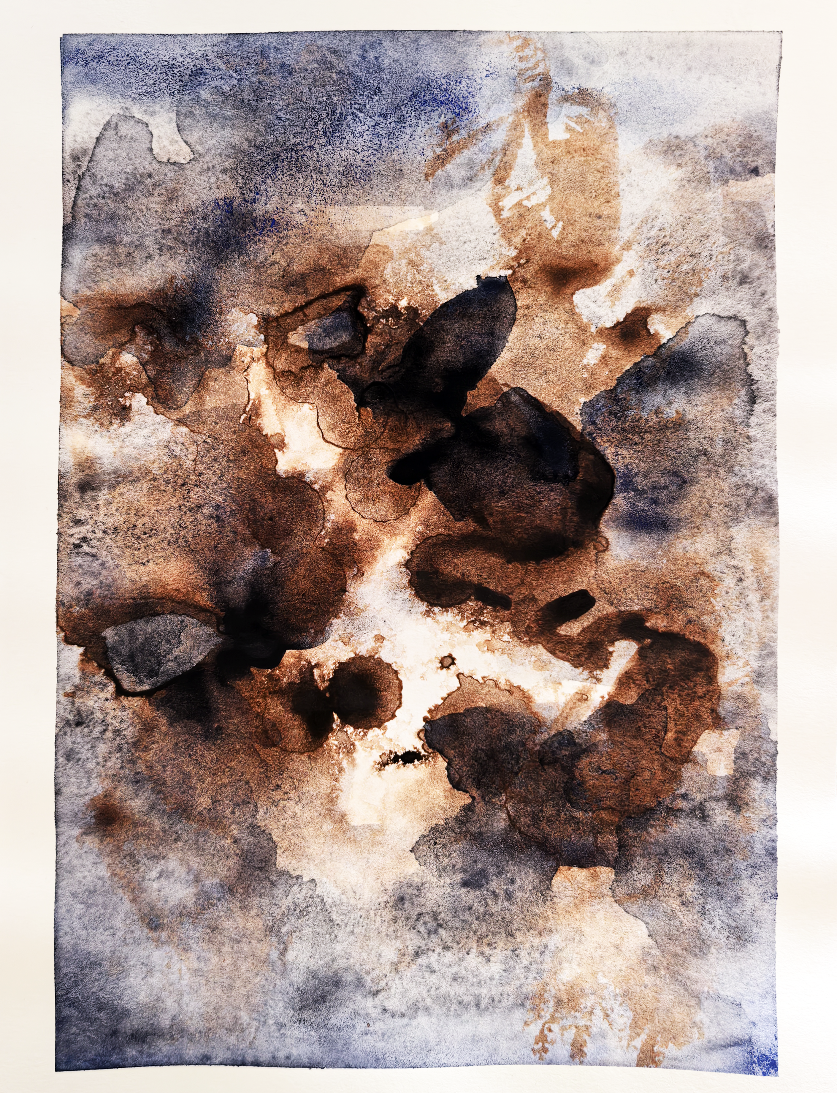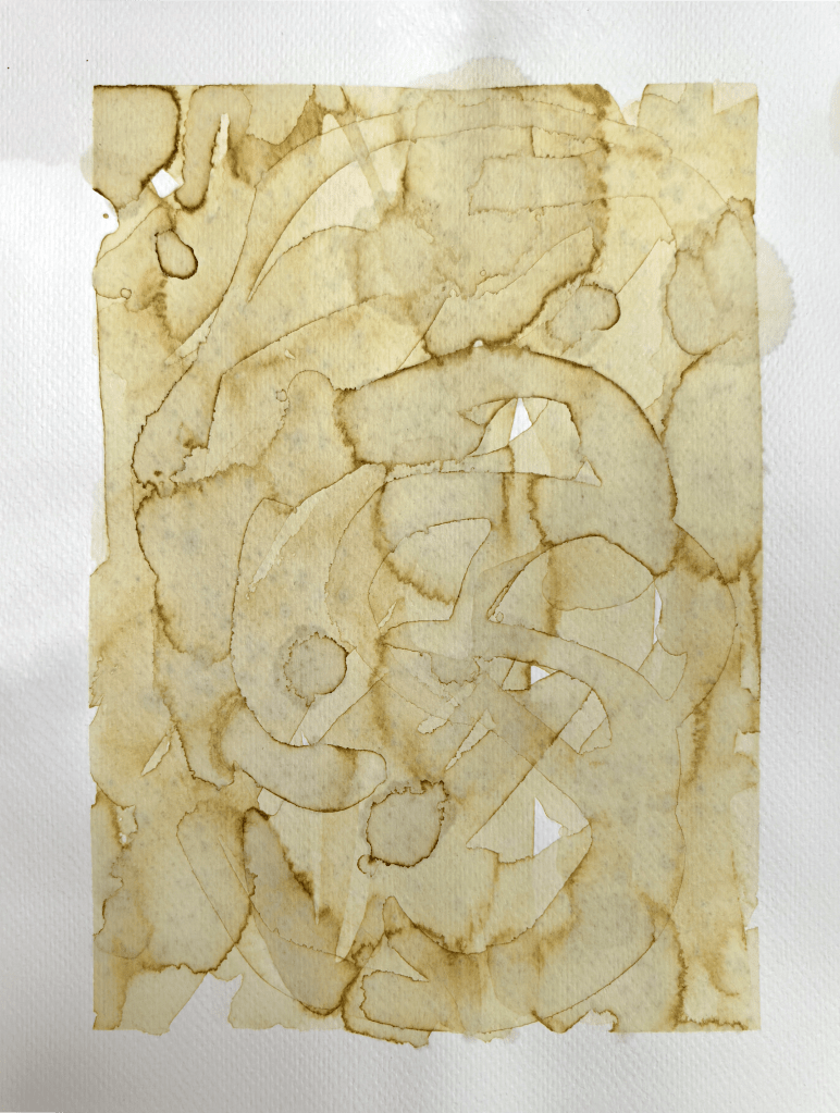 缪可言,《咖啡话 #11_b》,2025,纸面水彩以及综合湿性媒介,7 x 9.5英寸(17.8×24.1厘米)