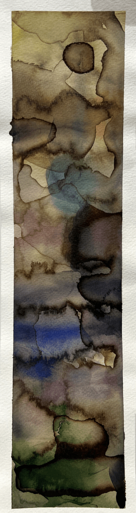 MIAO Keyan, Coffee Talk #13, 2025, Watercolor and wet mixed media on paper, 4 x 15’’ (10.2 x 38.1cm)